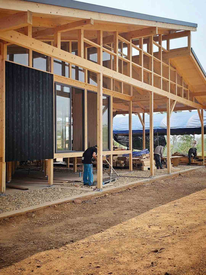 Finishing: Yakisugi modern black siding, hinoki flooring, hinoki decking, hinoki lattice, hinoki plywood